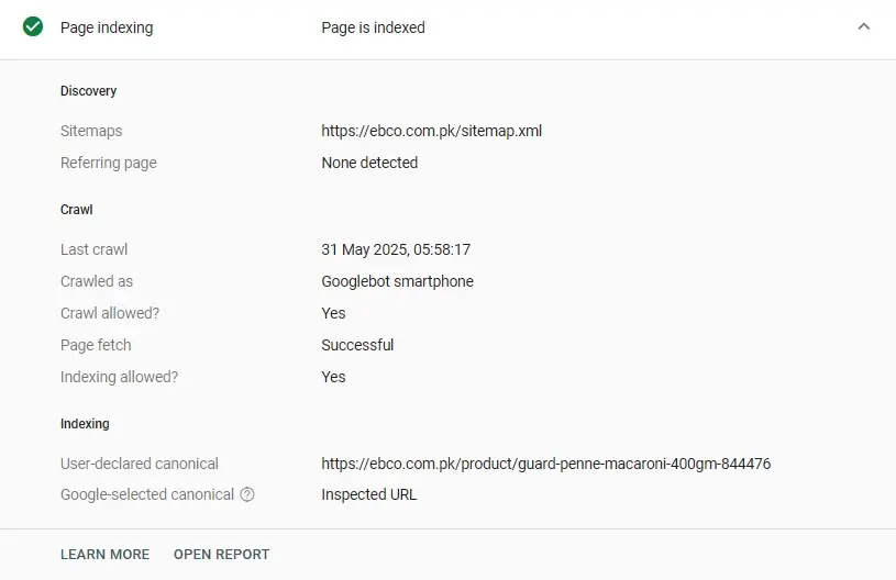 - Allowing important pages for indexing e.g. https://ebco.com.pk/robots.txt