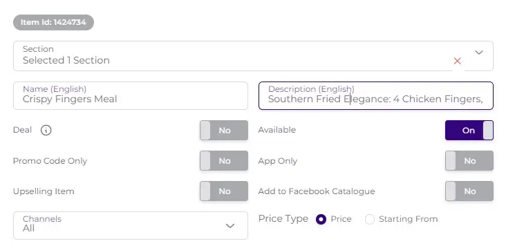 Product Catalogue → Item Management → Edit Item (Pencil Icon).